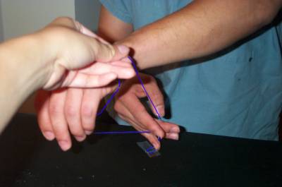 Now grab the thread with your right