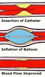 angioplasty, a small catheter is passed into the affected coronary artery,