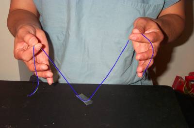 First, hold the thread in both hands