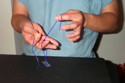 Now grab the thread with your right