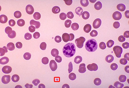 lab yourself and examine the patient's peripheral blood smear at 10x magnification:
