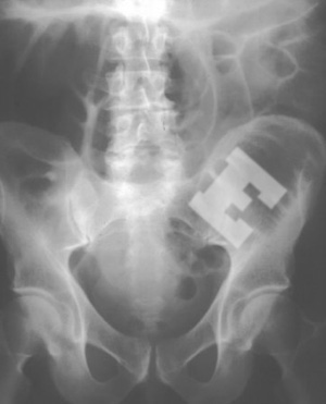 colleague suggests you get an abdominal x-ray, which shows the following: